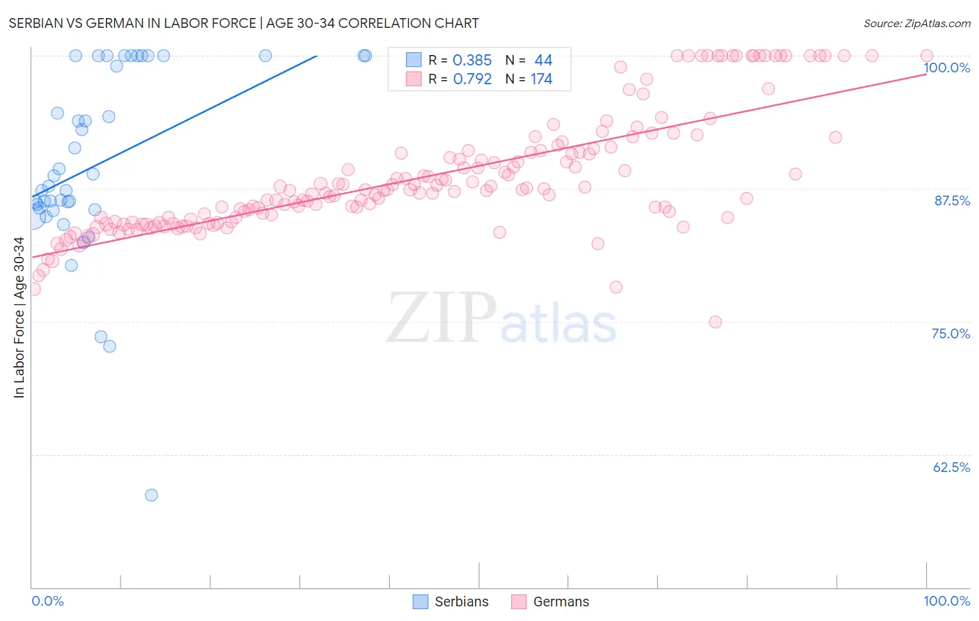 Serbian vs German In Labor Force | Age 30-34 Correlation Chart