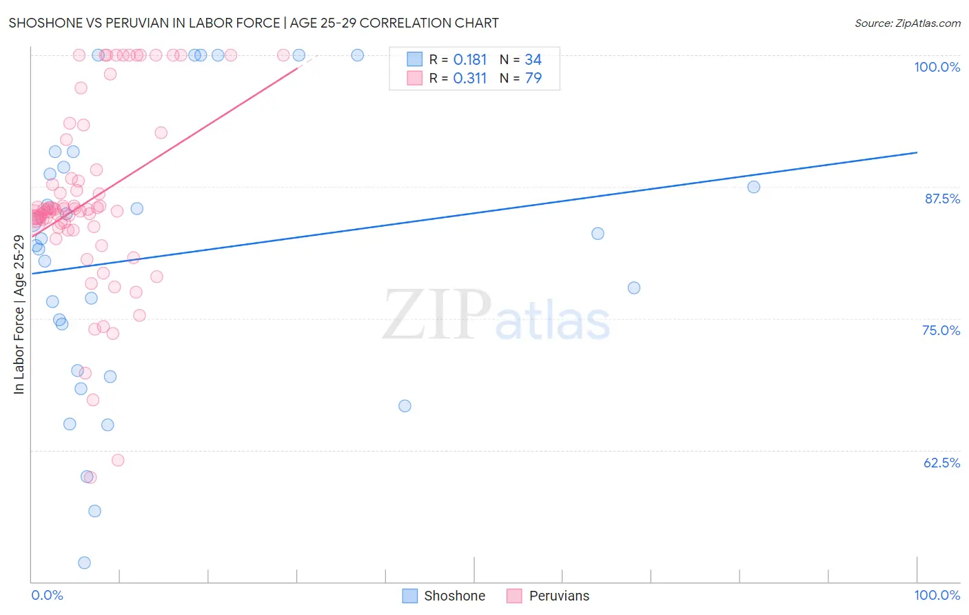 Shoshone vs Peruvian In Labor Force | Age 25-29 Correlation Chart
