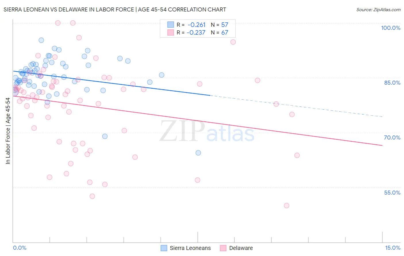 Sierra Leonean vs Delaware In Labor Force | Age 45-54 Correlation Chart
