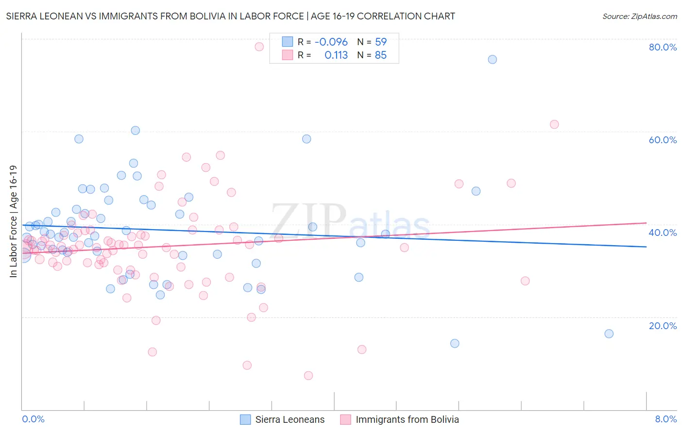 Sierra Leonean vs Immigrants from Bolivia In Labor Force | Age 16-19 Correlation Chart
