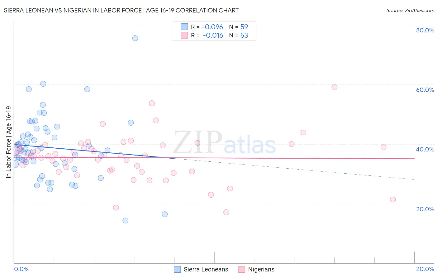 Sierra Leonean vs Nigerian In Labor Force | Age 16-19 Correlation Chart