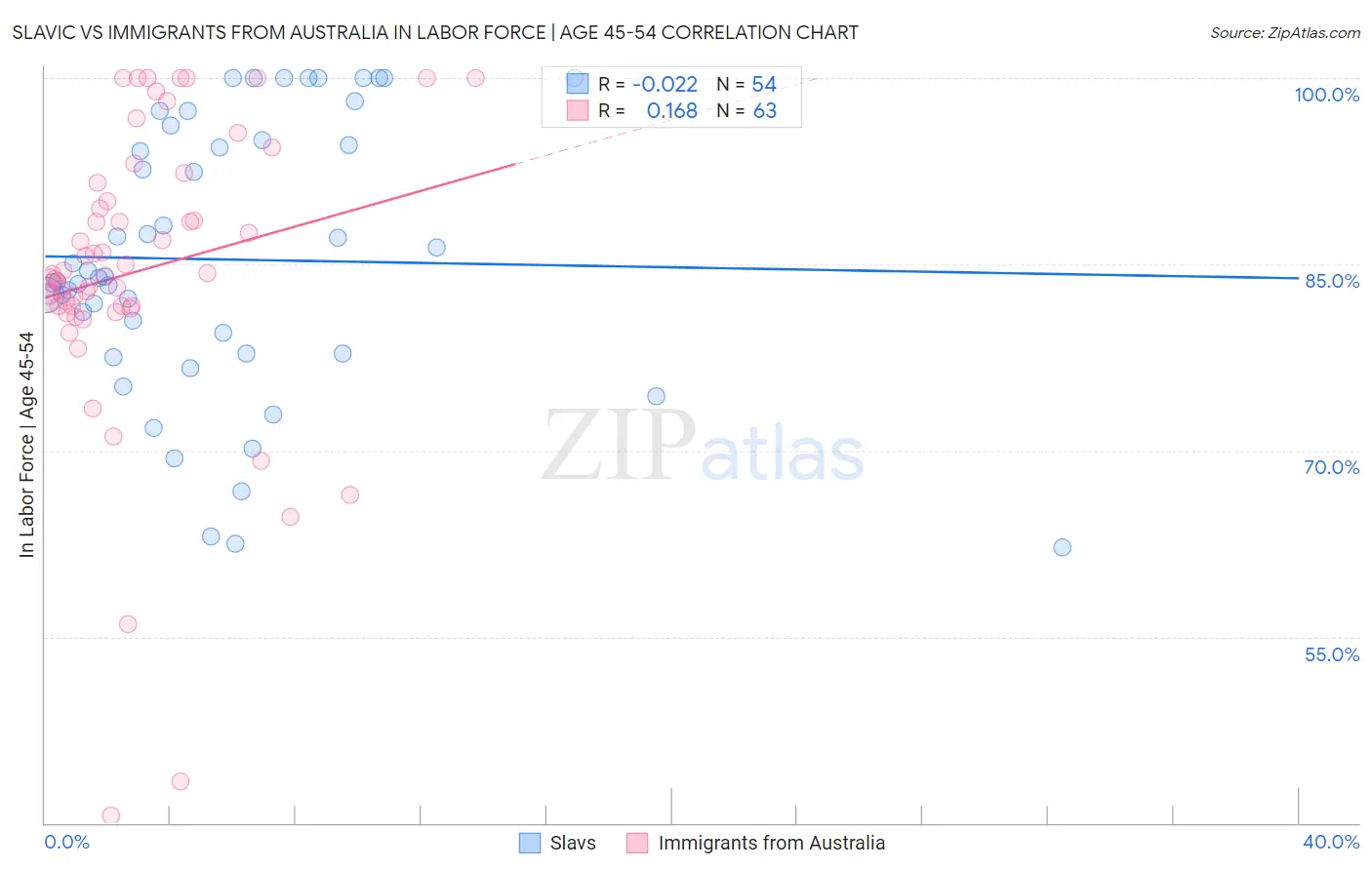 Slavic vs Immigrants from Australia In Labor Force | Age 45-54 Correlation Chart