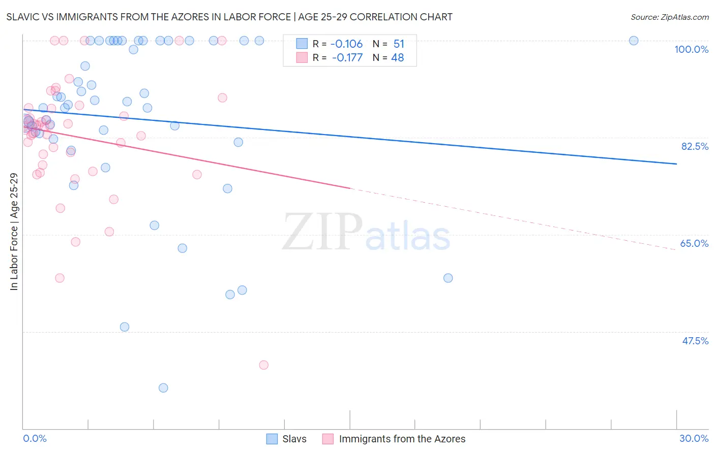 Slavic vs Immigrants from the Azores In Labor Force | Age 25-29 Correlation Chart