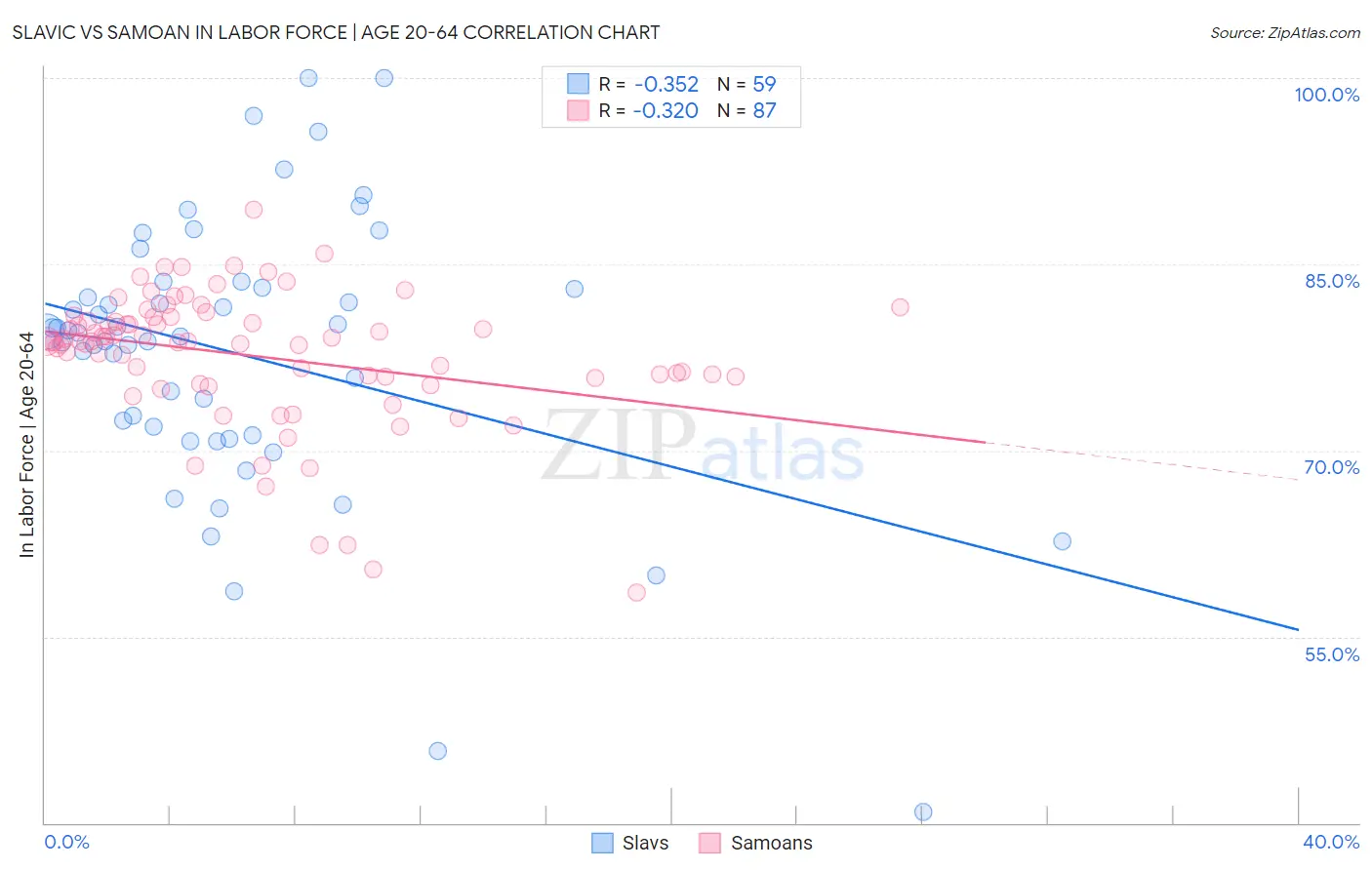 Slavic vs Samoan In Labor Force | Age 20-64 Correlation Chart