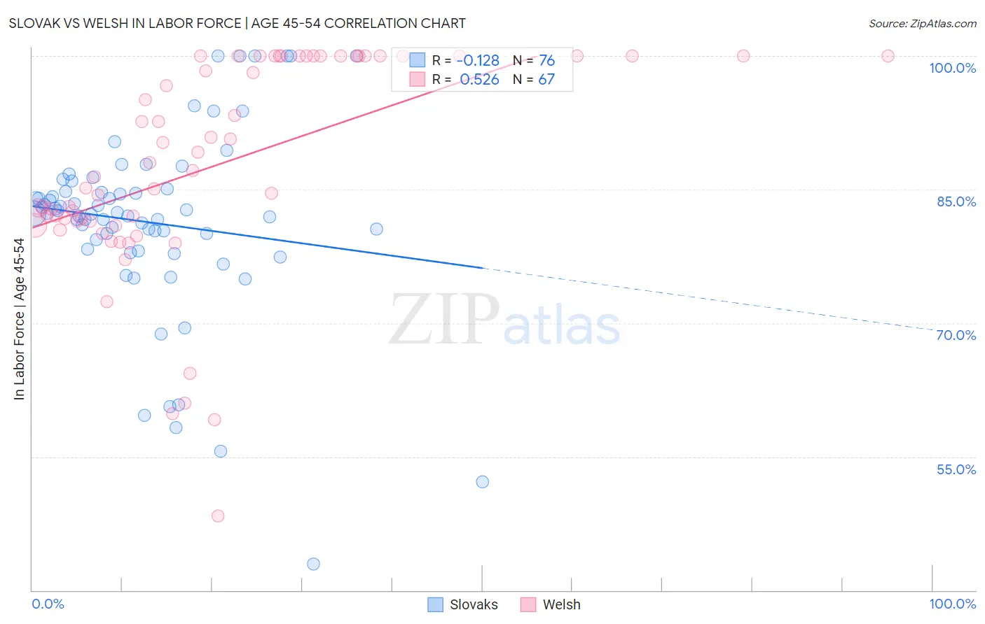 Slovak vs Welsh In Labor Force | Age 45-54 Correlation Chart