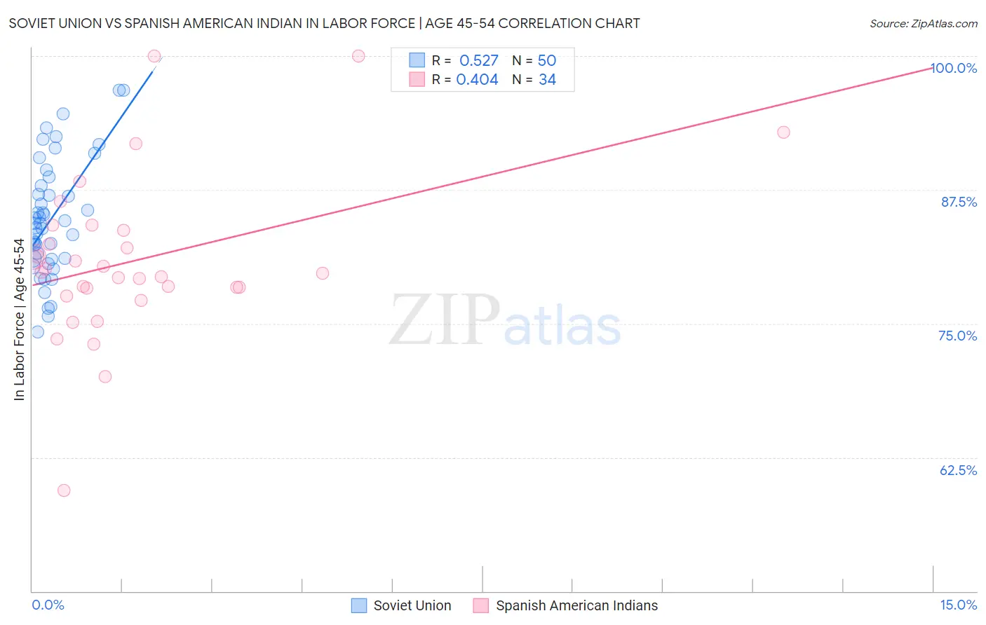 Soviet Union vs Spanish American Indian In Labor Force | Age 45-54 Correlation Chart