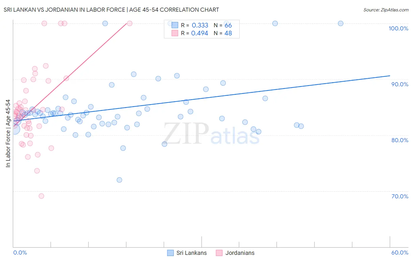 Sri Lankan vs Jordanian In Labor Force | Age 45-54 Correlation Chart