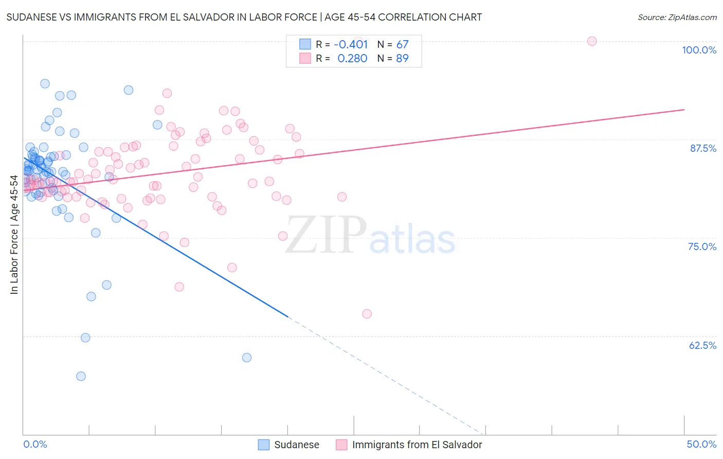 Sudanese vs Immigrants from El Salvador In Labor Force | Age 45-54 Correlation Chart