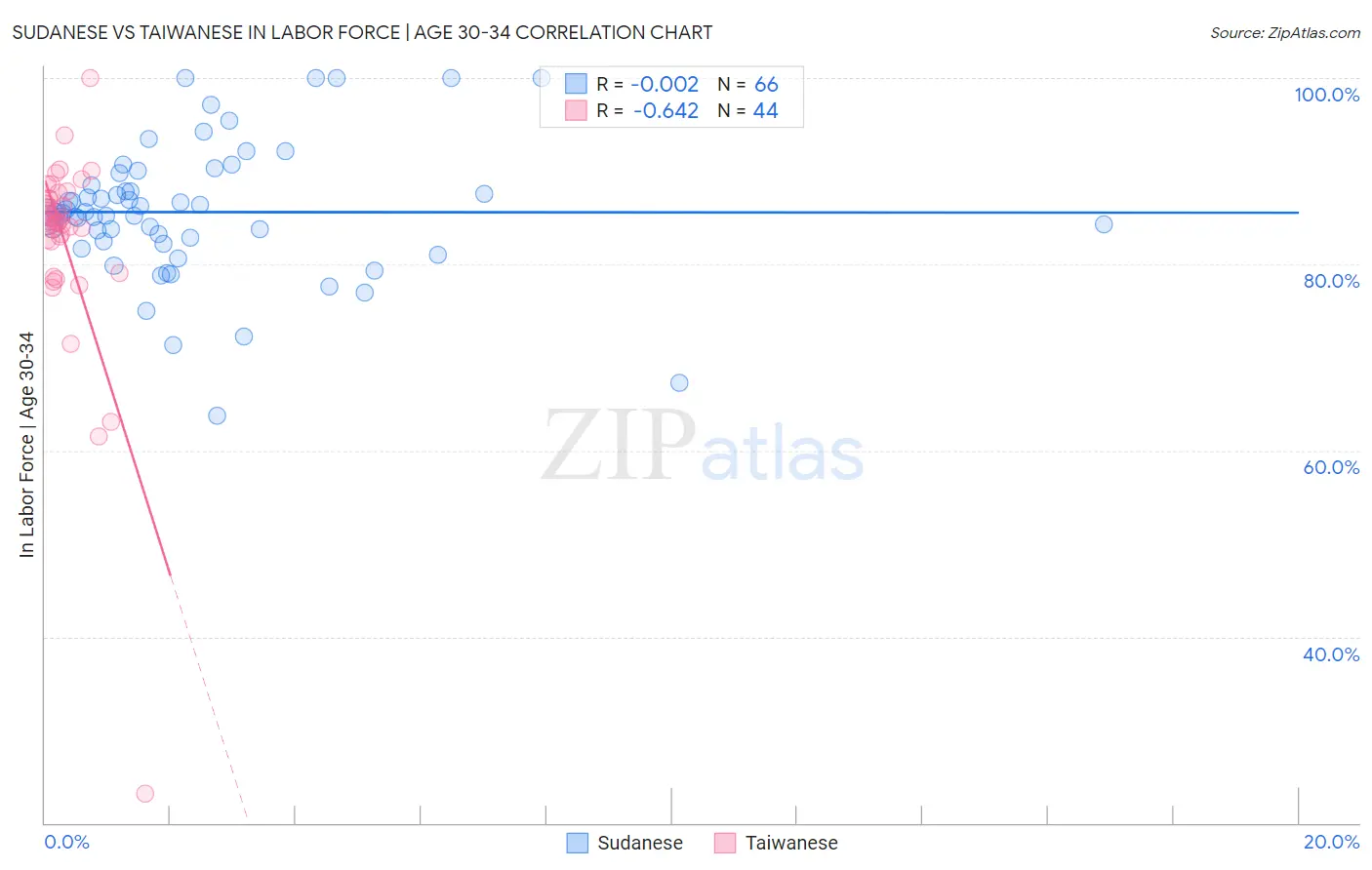 Sudanese vs Taiwanese In Labor Force | Age 30-34 Correlation Chart
