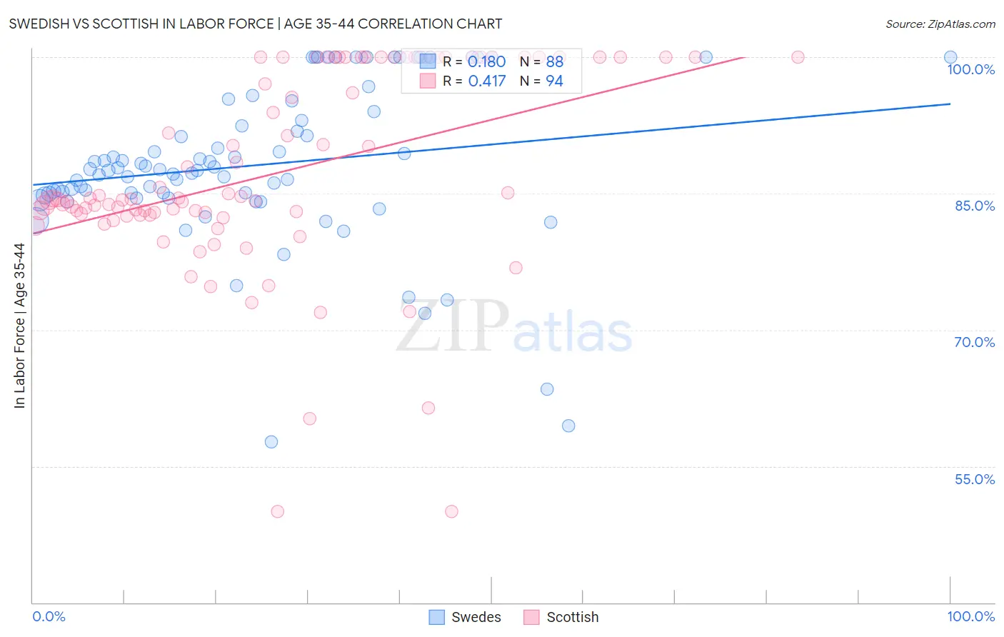 Swedish vs Scottish In Labor Force | Age 35-44 Correlation Chart