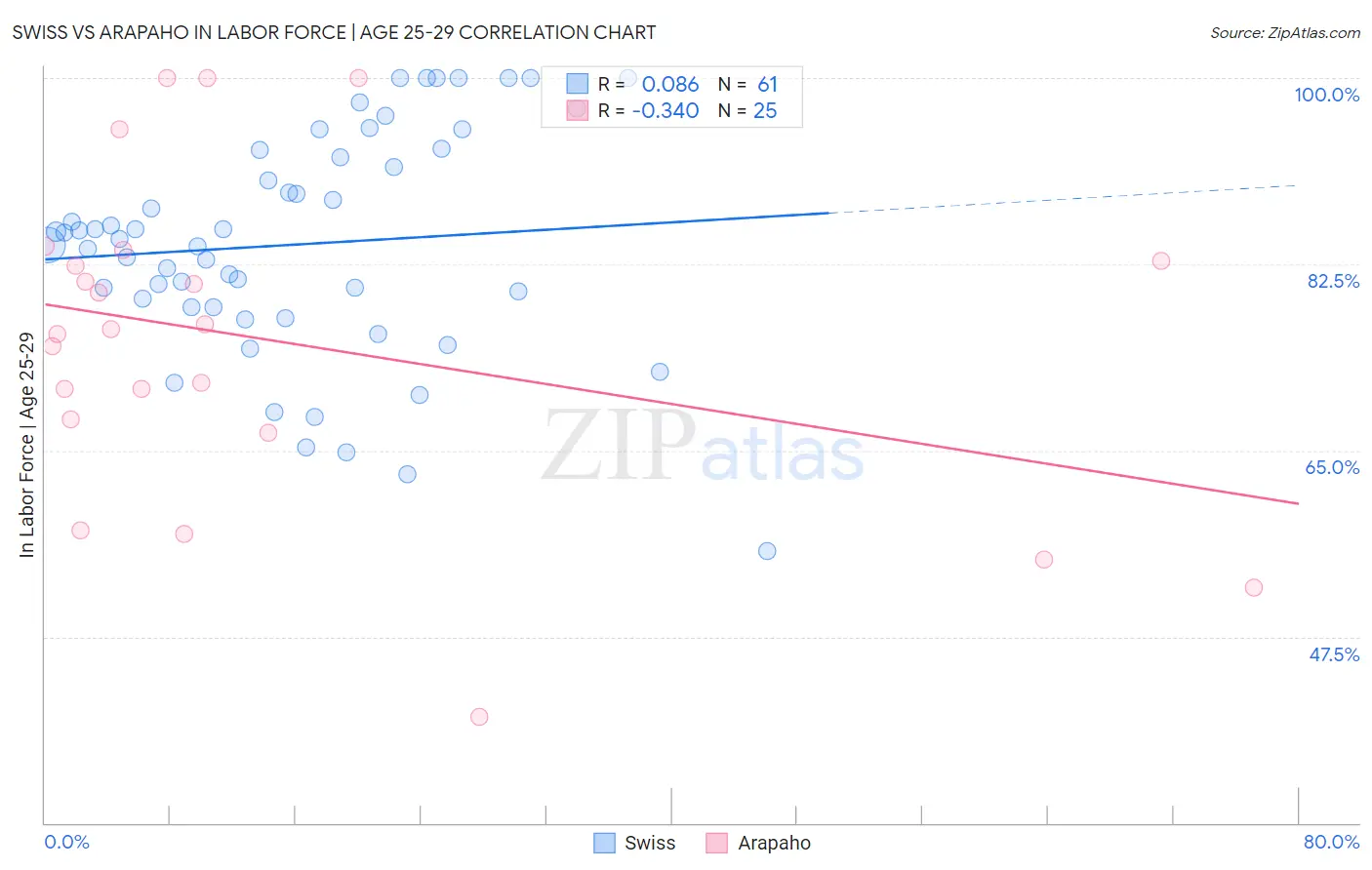 Swiss vs Arapaho In Labor Force | Age 25-29 Correlation Chart