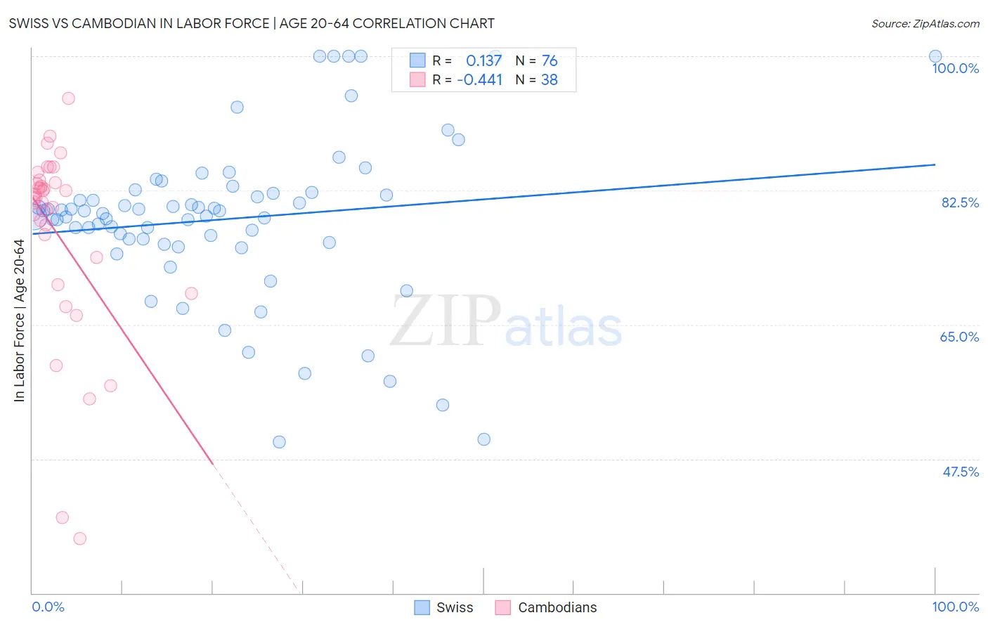 Swiss vs Cambodian In Labor Force | Age 20-64 Correlation Chart