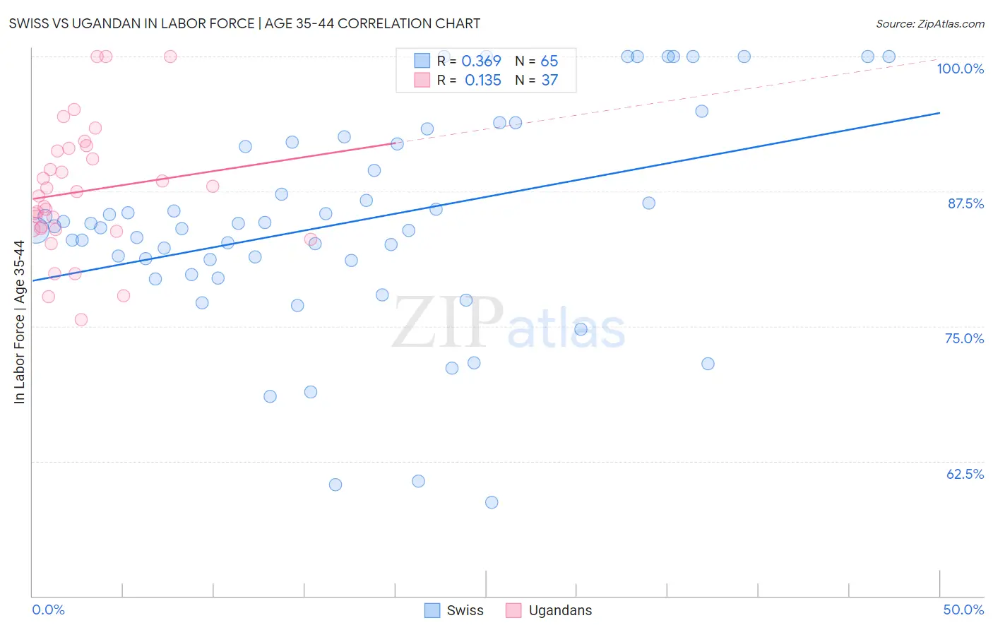 Swiss vs Ugandan In Labor Force | Age 35-44 Correlation Chart