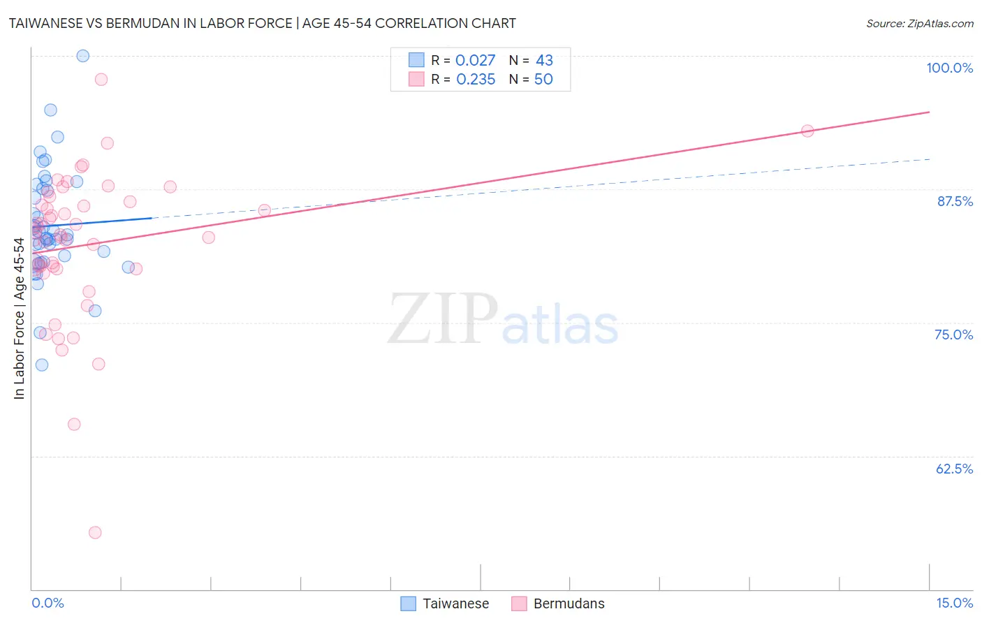 Taiwanese vs Bermudan In Labor Force | Age 45-54 Correlation Chart