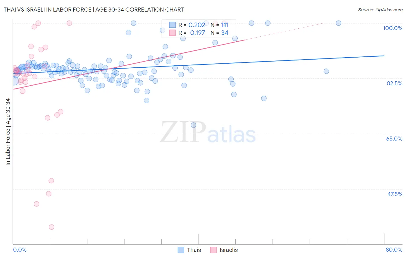 Thai vs Israeli In Labor Force | Age 30-34 Correlation Chart