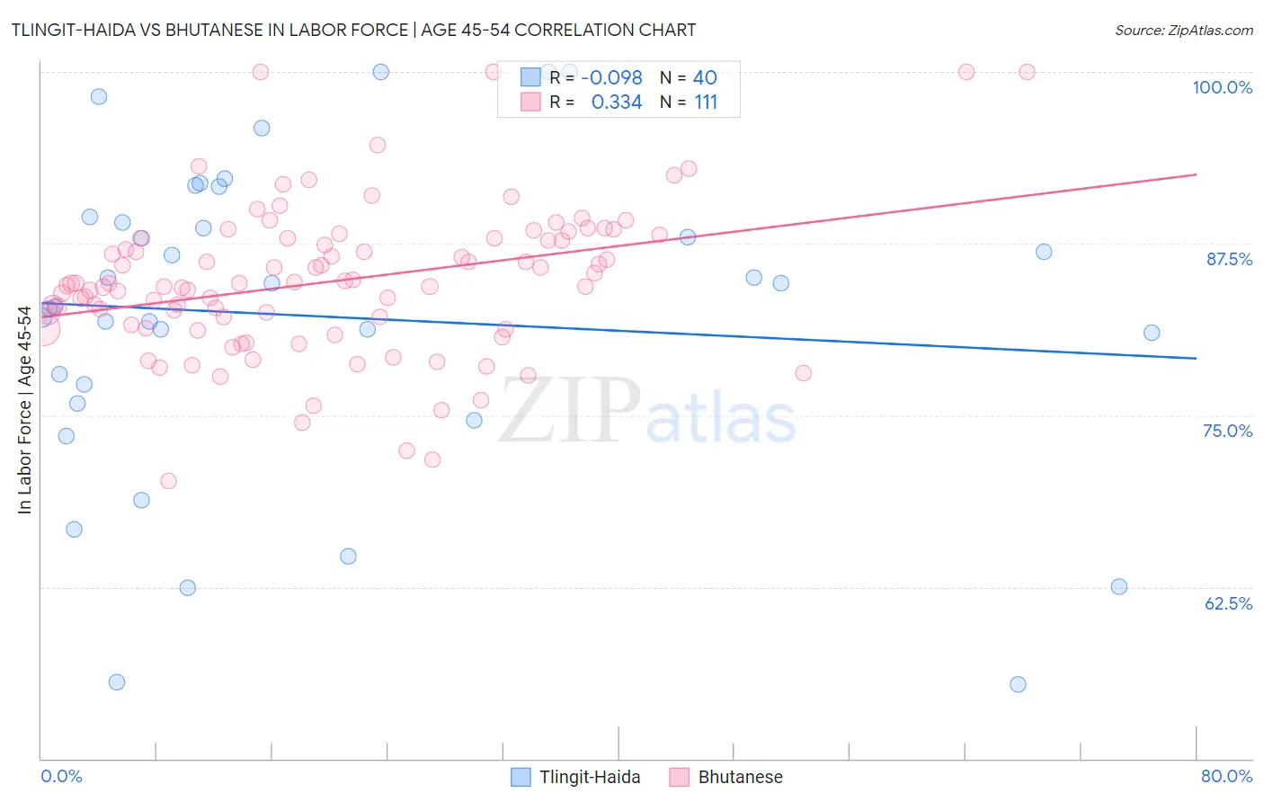 Tlingit-Haida vs Bhutanese In Labor Force | Age 45-54 Correlation Chart
