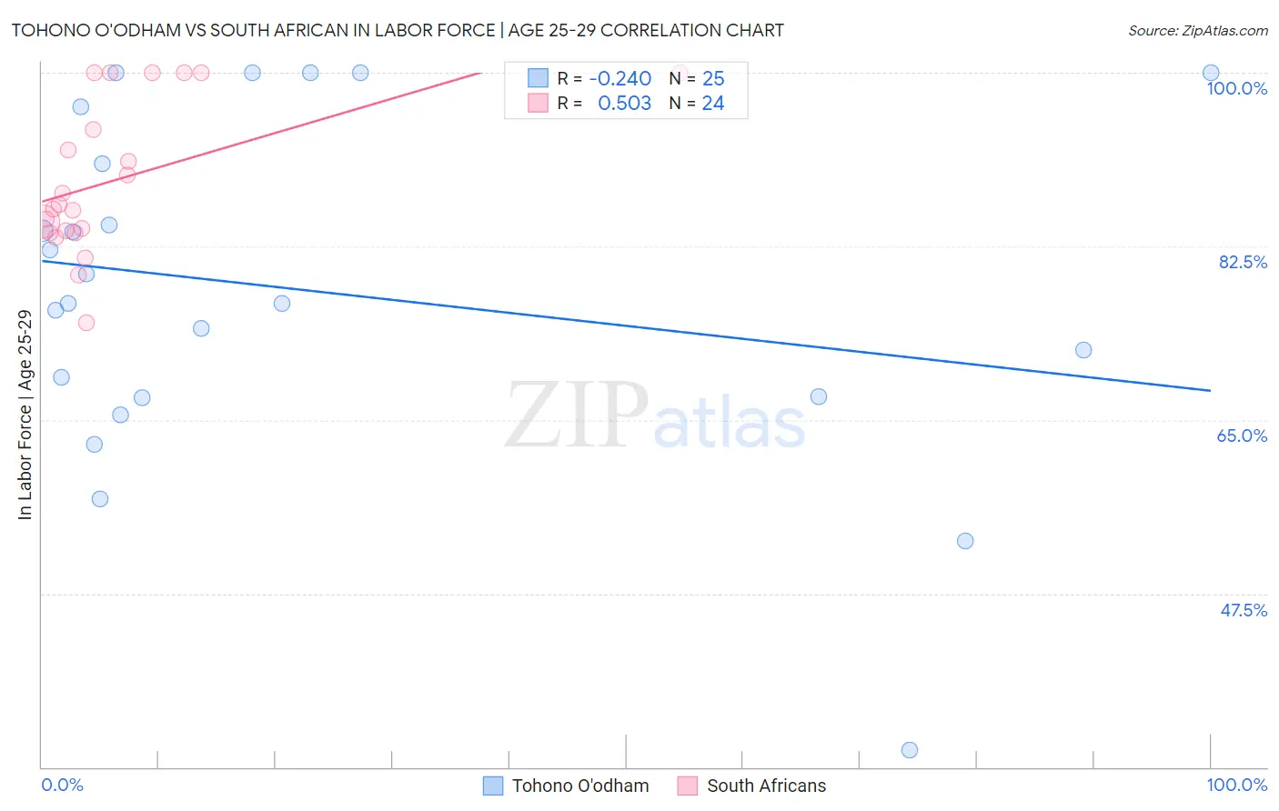 Tohono O'odham vs South African In Labor Force | Age 25-29 Correlation Chart
