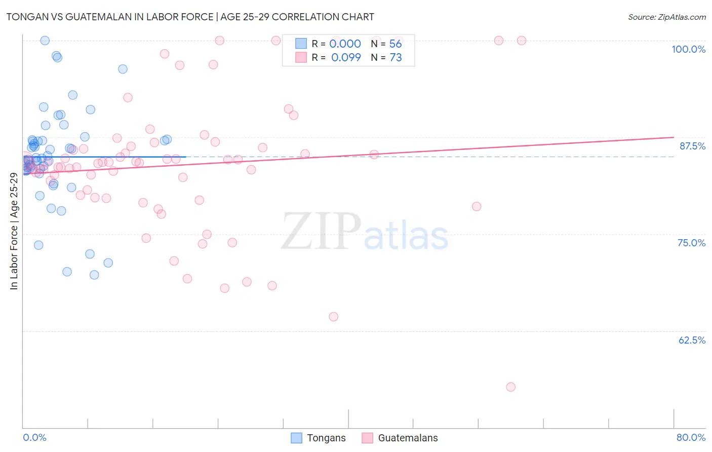 Tongan vs Guatemalan In Labor Force | Age 25-29 Correlation Chart
