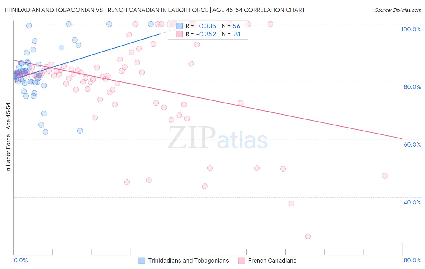 Trinidadian and Tobagonian vs French Canadian In Labor Force | Age 45-54 Correlation Chart