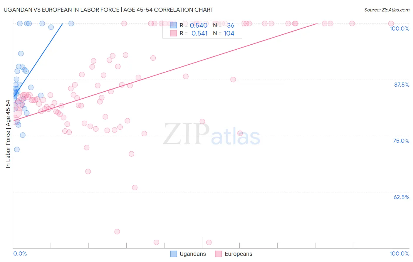 Ugandan vs European In Labor Force | Age 45-54 Correlation Chart