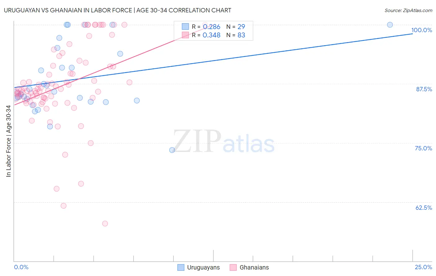 Uruguayan vs Ghanaian In Labor Force | Age 30-34 Correlation Chart