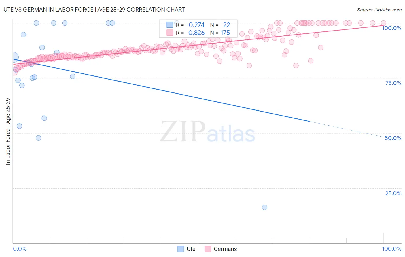 Ute vs German In Labor Force | Age 25-29 Correlation Chart