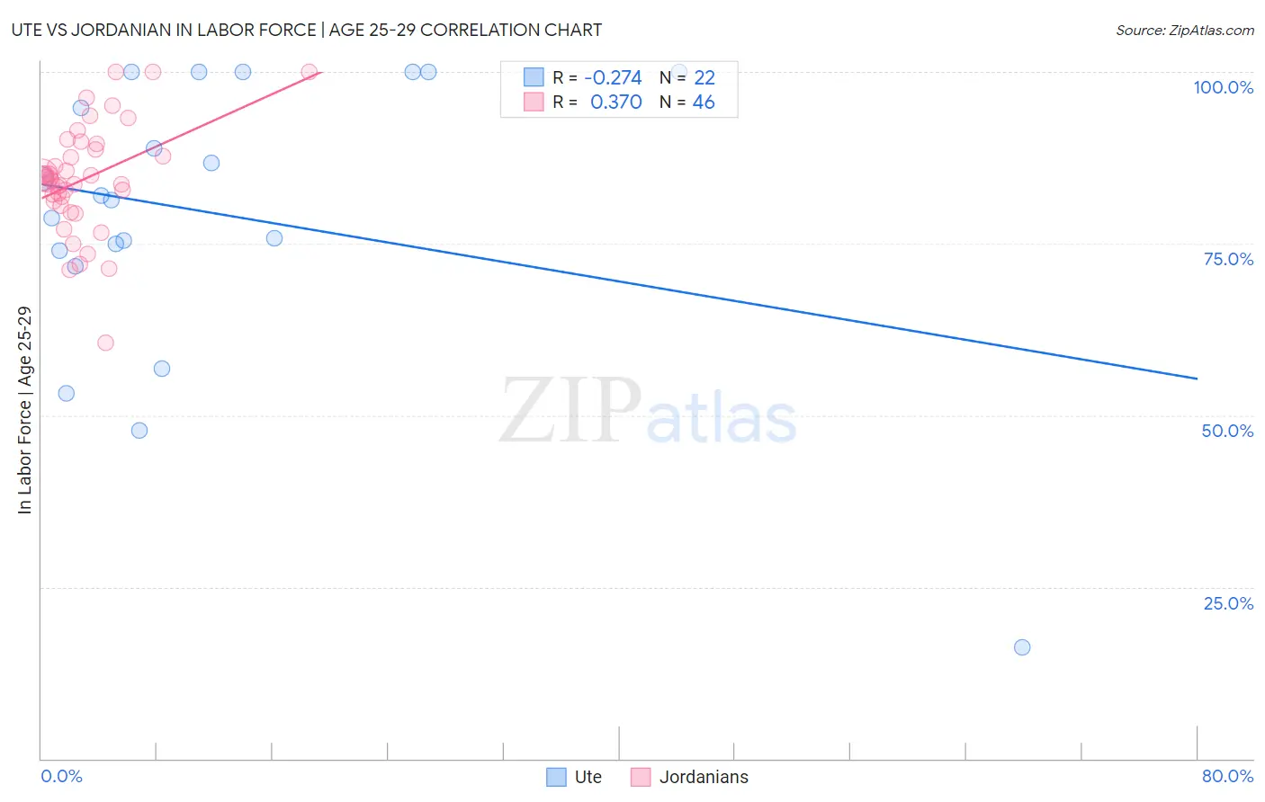 Ute vs Jordanian In Labor Force | Age 25-29 Correlation Chart