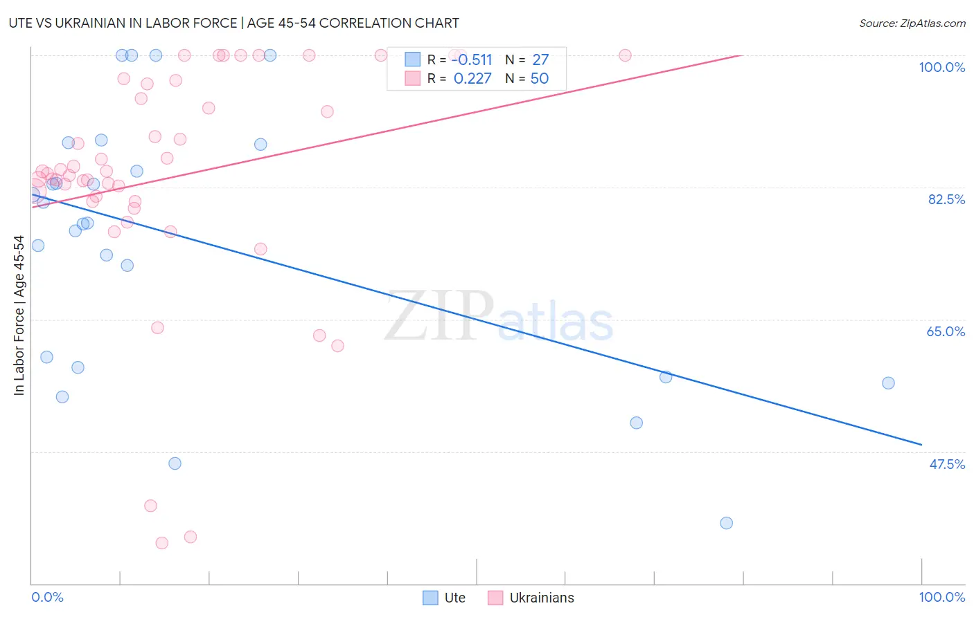 Ute vs Ukrainian In Labor Force | Age 45-54 Correlation Chart
