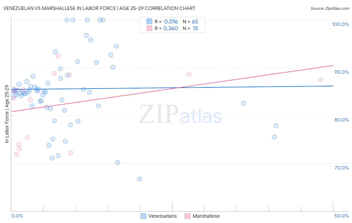 Venezuelan vs Marshallese In Labor Force | Age 25-29 Correlation Chart