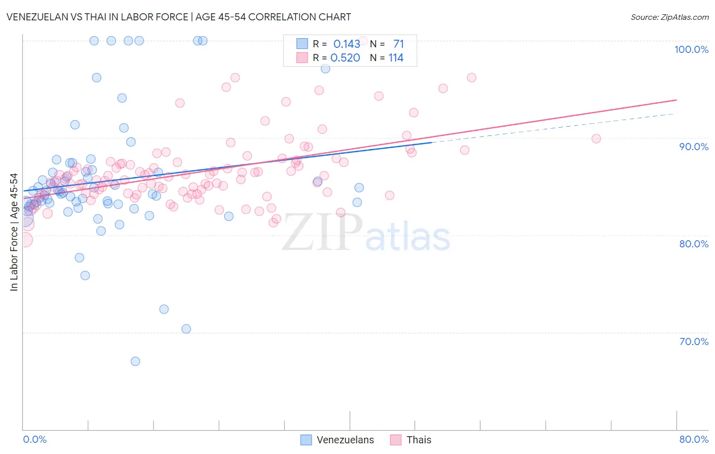 Venezuelan vs Thai In Labor Force | Age 45-54 Correlation Chart