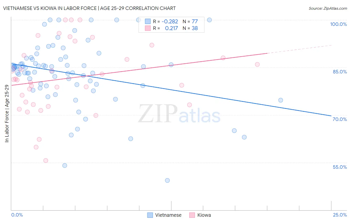 Vietnamese vs Kiowa In Labor Force | Age 25-29 Correlation Chart