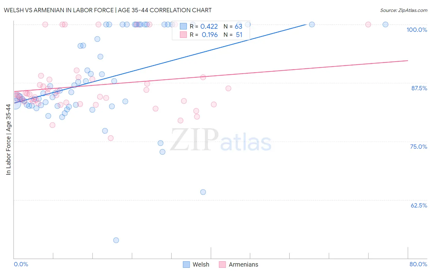 Welsh vs Armenian In Labor Force | Age 35-44 Correlation Chart