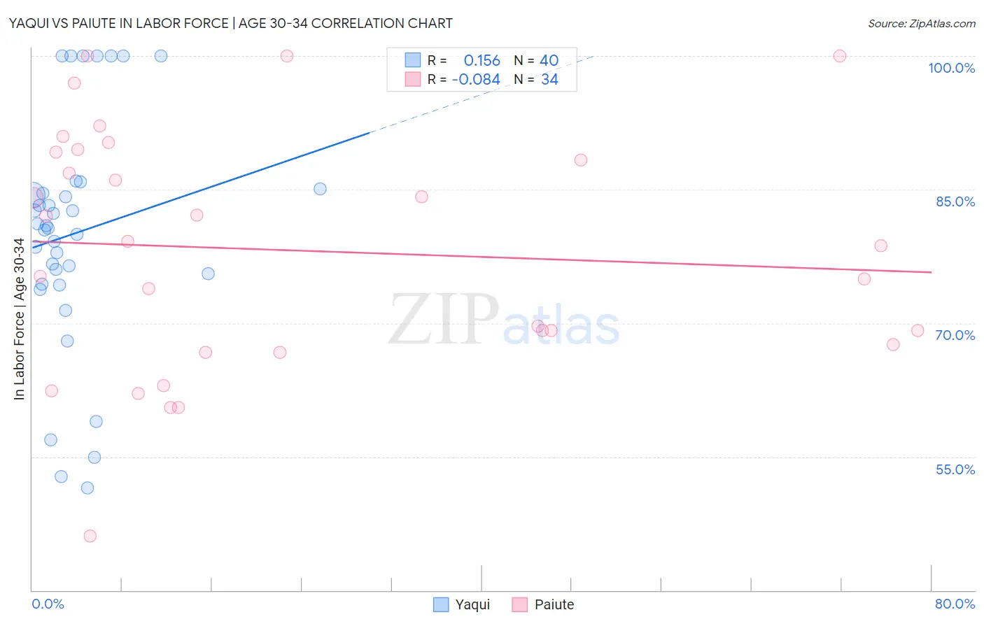 Yaqui vs Paiute In Labor Force | Age 30-34 Correlation Chart