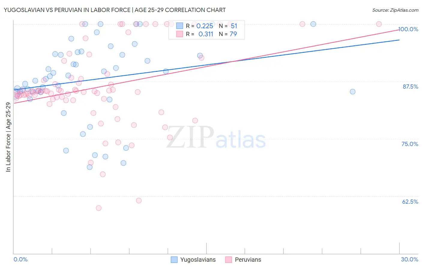 Yugoslavian vs Peruvian In Labor Force | Age 25-29 Correlation Chart
