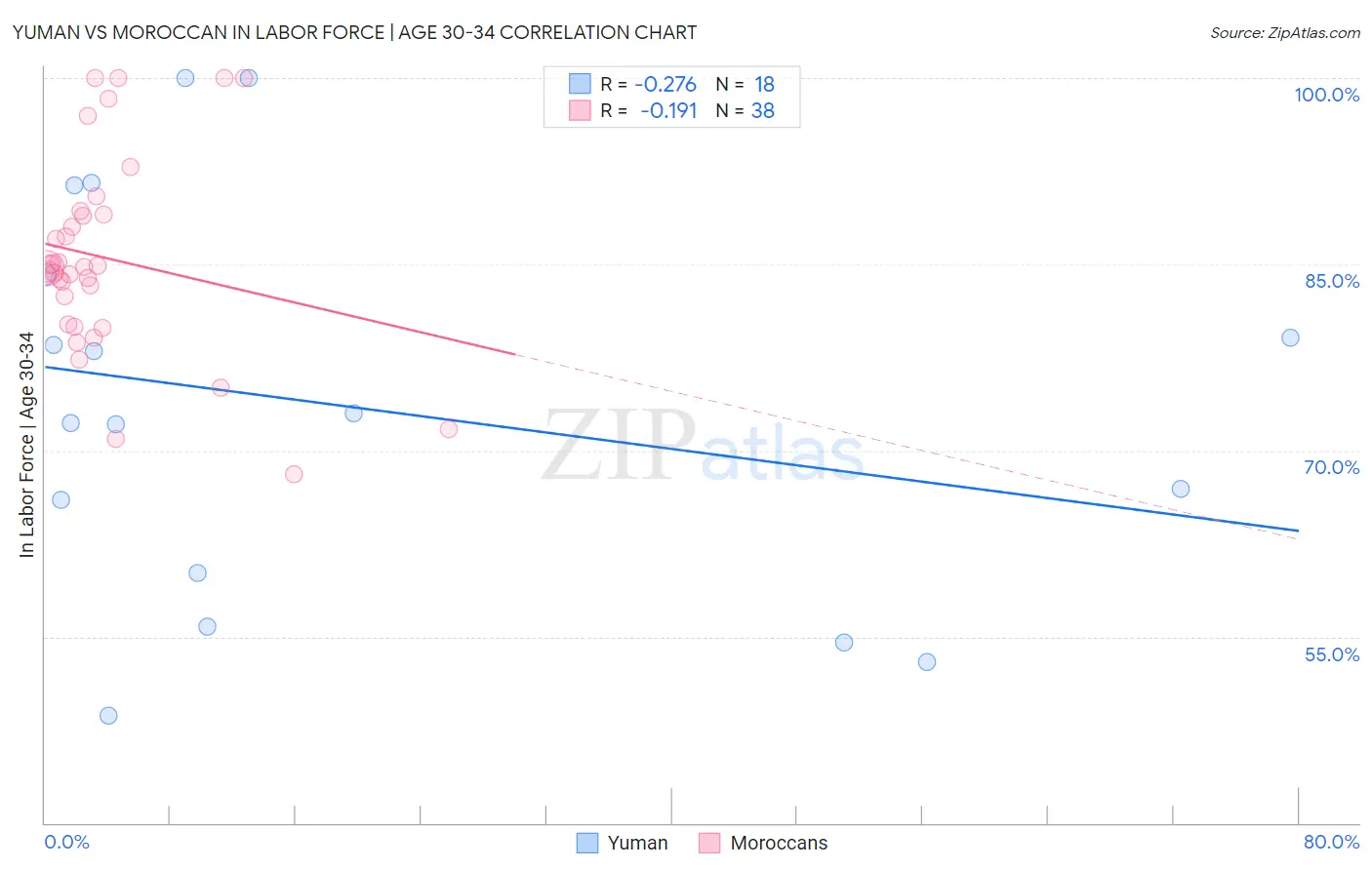 Yuman vs Moroccan In Labor Force | Age 30-34 Correlation Chart
