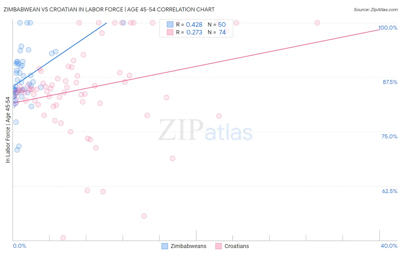 Zimbabwean vs Croatian In Labor Force | Age 45-54 Correlation Chart