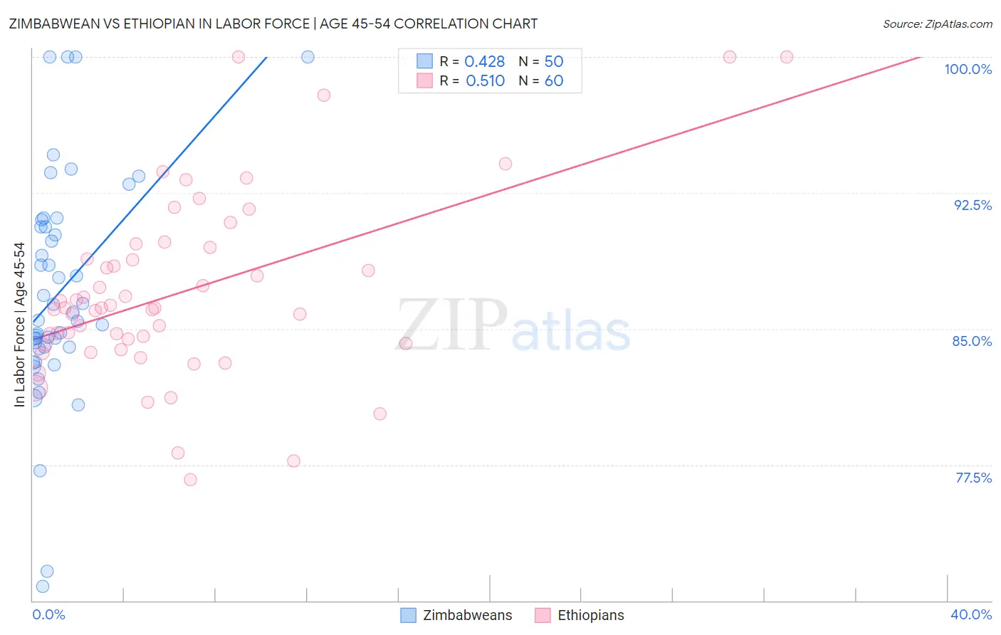 Zimbabwean vs Ethiopian In Labor Force | Age 45-54 Correlation Chart
