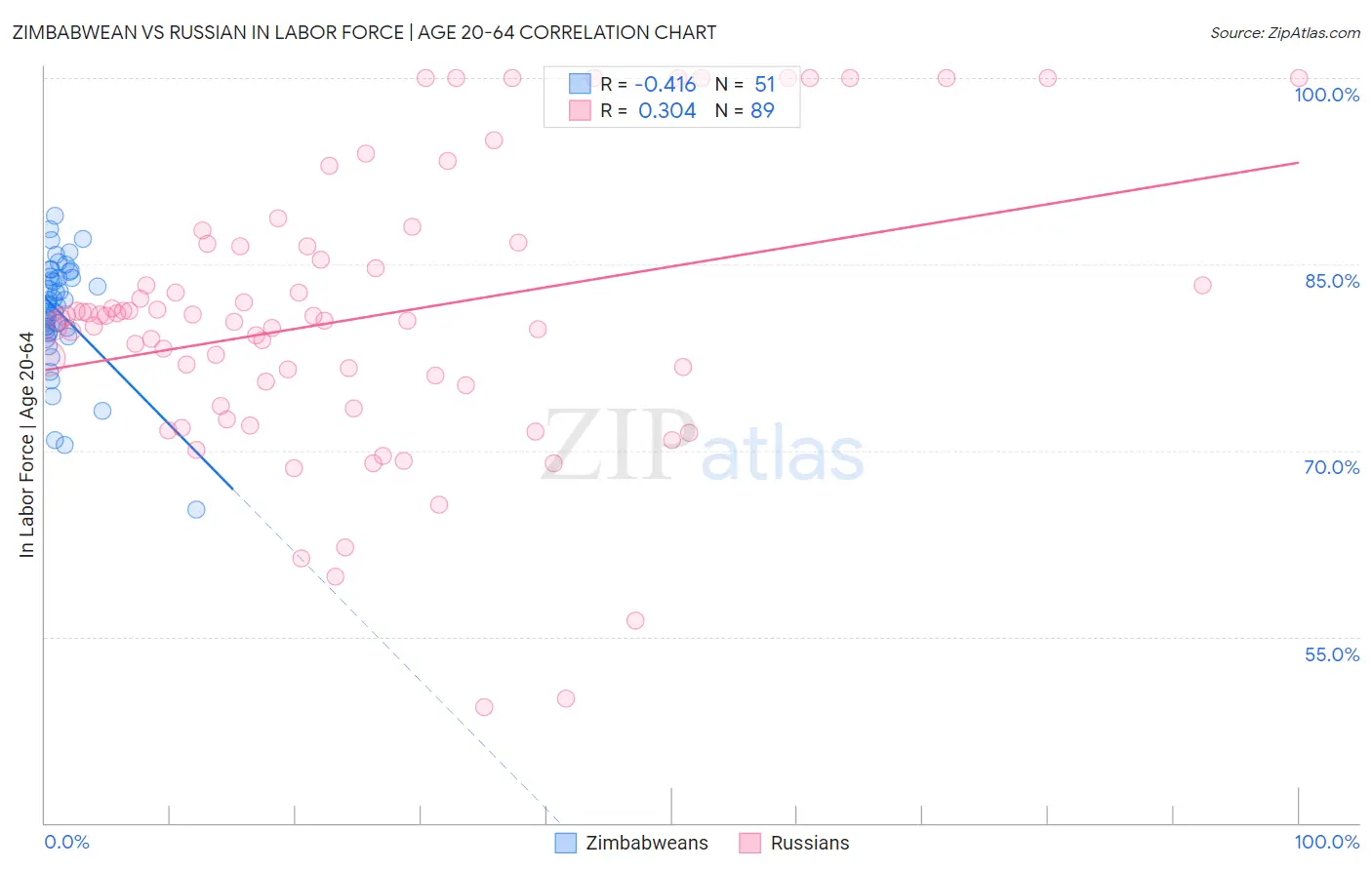 Zimbabwean vs Russian In Labor Force | Age 20-64 Correlation Chart