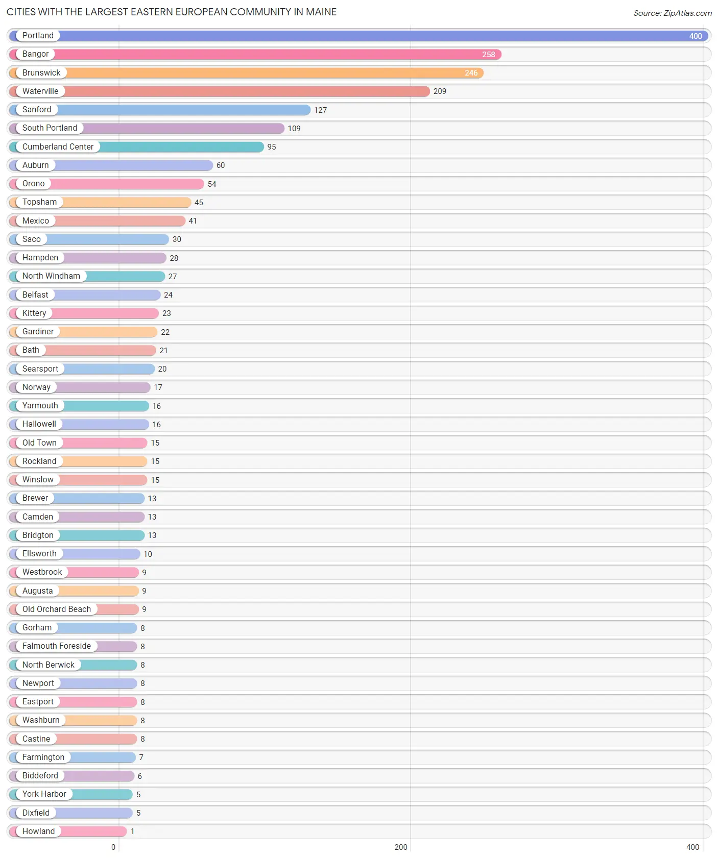 Top 10 Cities with the Largest Eastern European Community in Maine are: