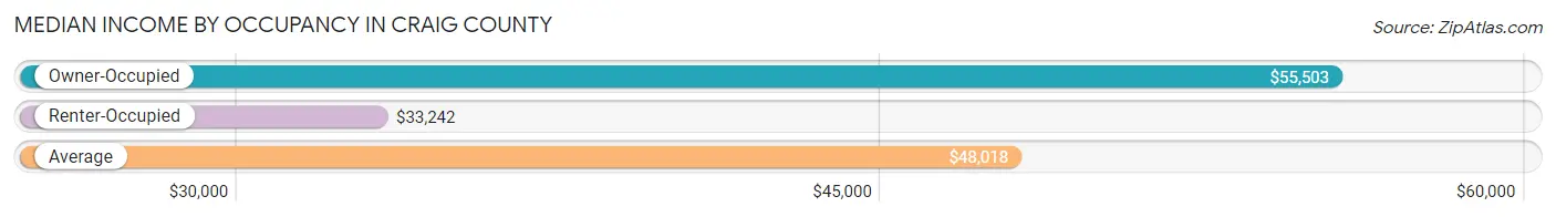 Per Capita Income in Craig County is $24,199, while median incomes of families and households are $56,307 and $48,018 respectively.