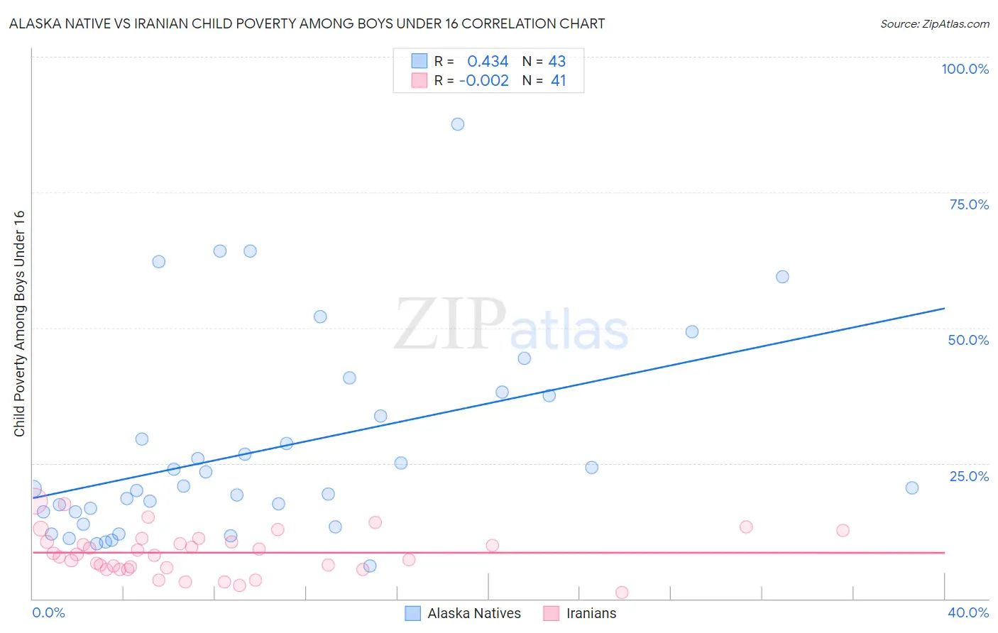 Alaska Native vs Iranian Child Poverty Among Boys Under 16 Correlation Chart