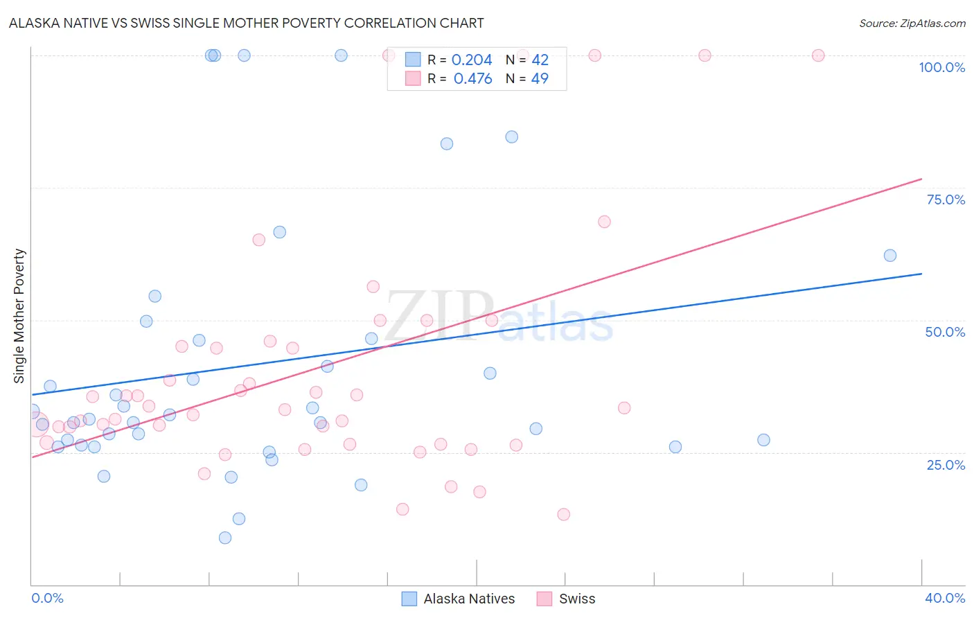 Alaska Native vs Swiss Single Mother Poverty Correlation Chart
