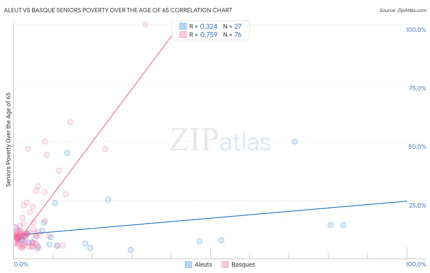 Aleut vs Basque Seniors Poverty Over the Age of 65 Correlation Chart