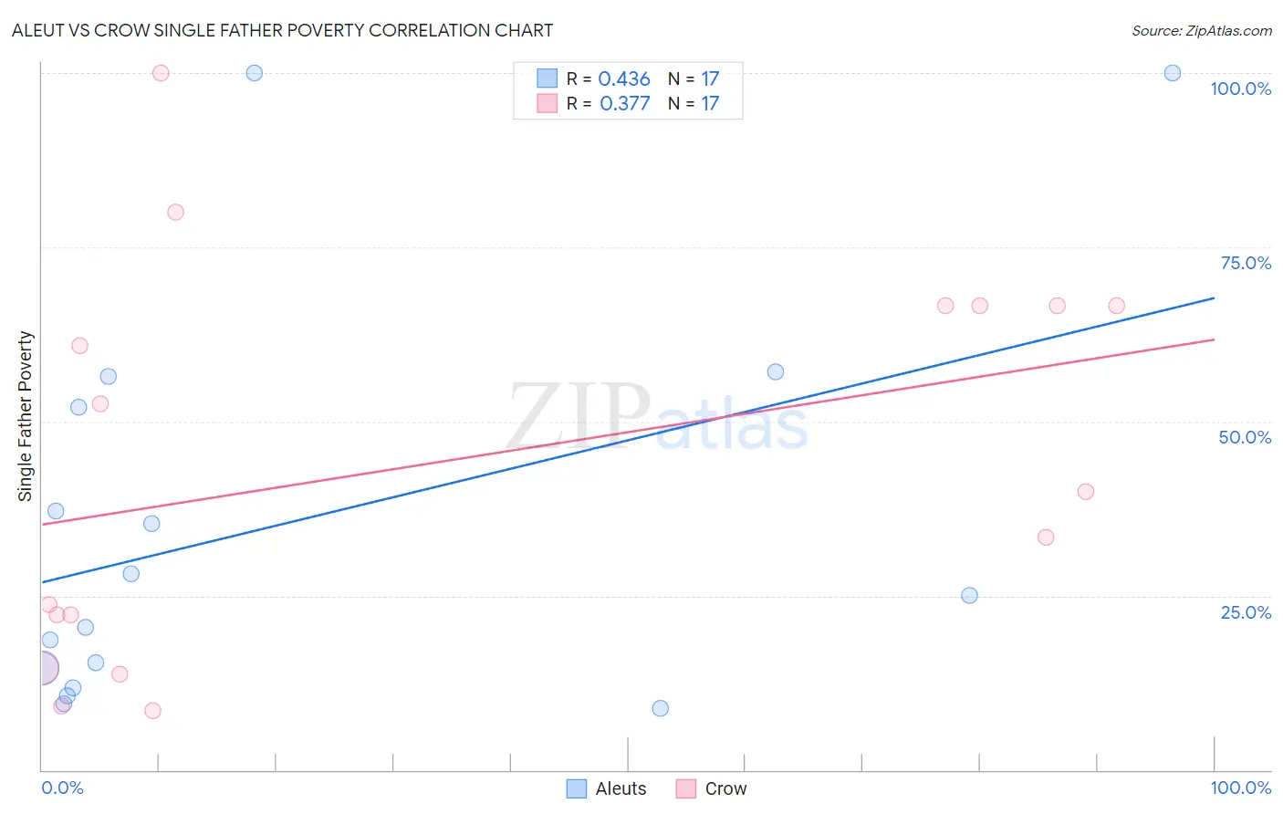 Aleut vs Crow Single Father Poverty Correlation Chart