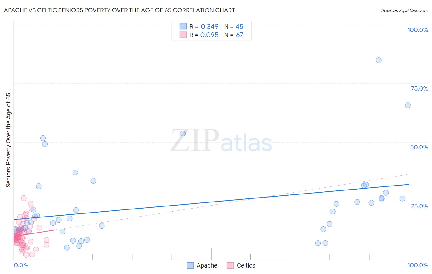 Apache vs Celtic Seniors Poverty Over the Age of 65 Correlation Chart