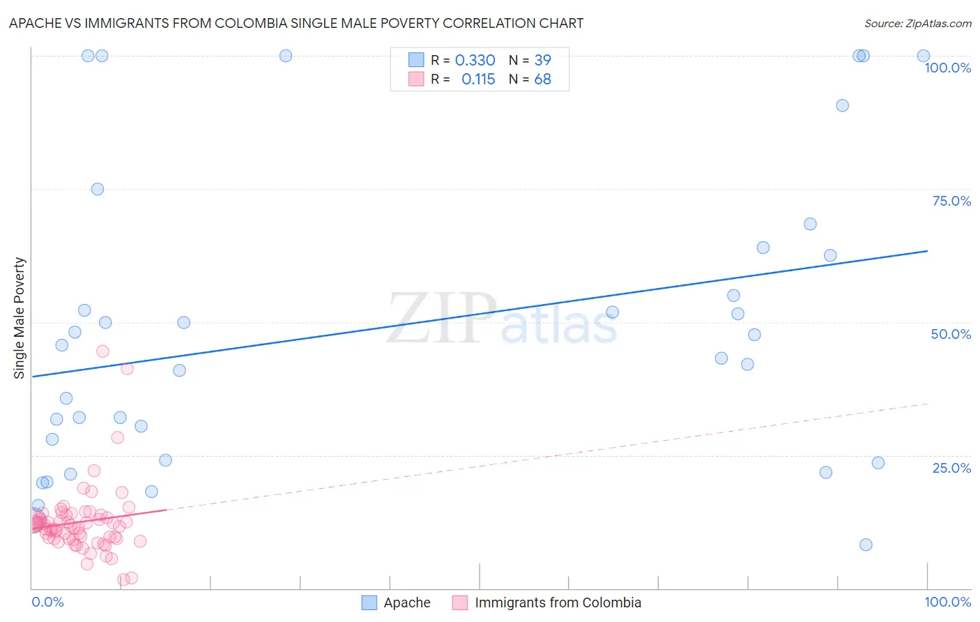 Apache vs Immigrants from Colombia Single Male Poverty Correlation Chart