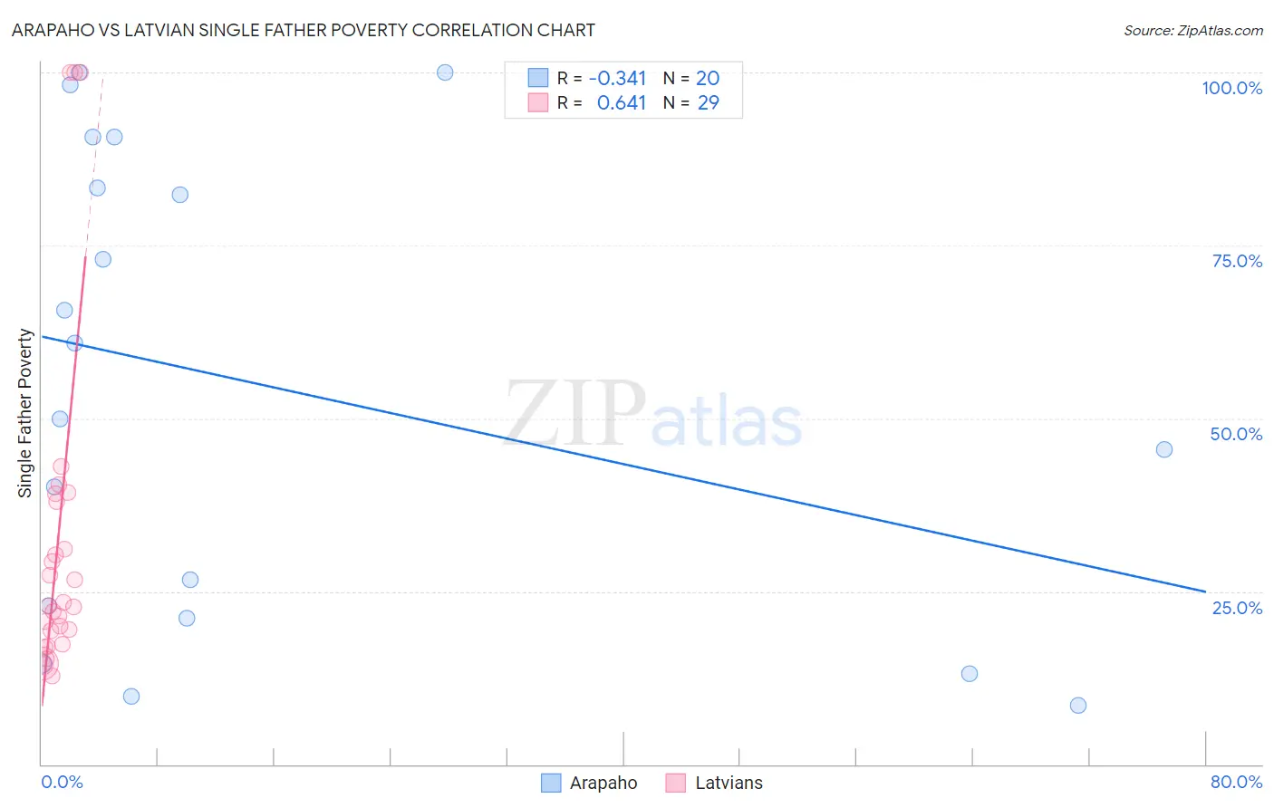 Arapaho vs Latvian Single Father Poverty Correlation Chart