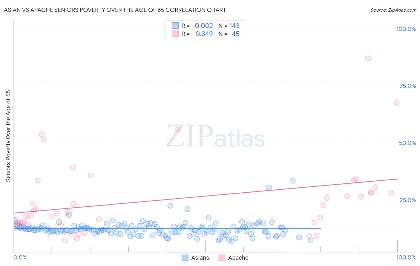 Asian vs Apache Seniors Poverty Over the Age of 65