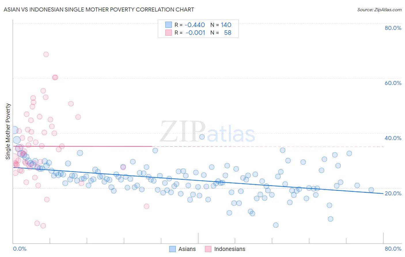 Asian vs Indonesian Single Mother Poverty Correlation Chart