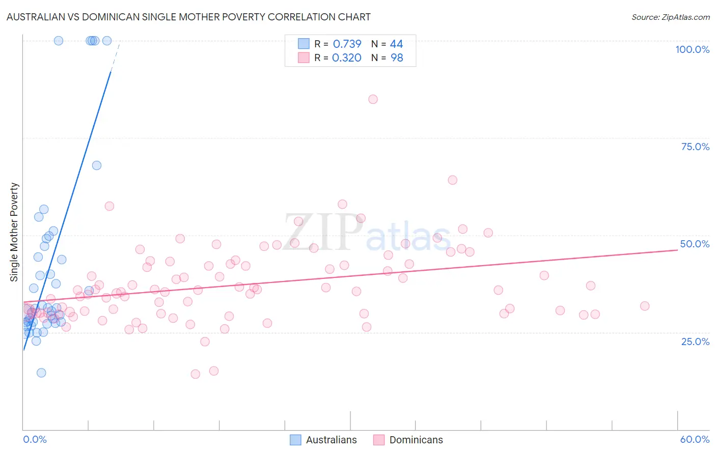 Australian vs Dominican Single Mother Poverty Correlation Chart